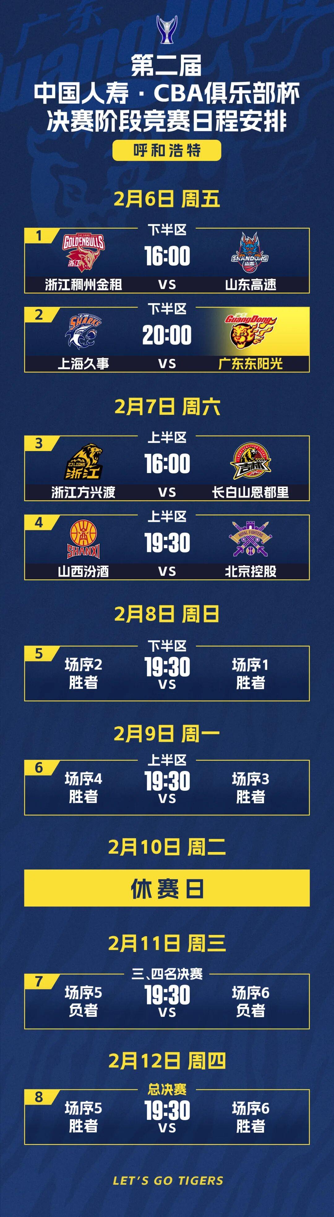 2月6日-12日,第二届CBA俱乐部杯决赛阶段将在内蒙古自治区呼和浩特市内蒙古体育馆举行。明晚20点,广东东阳光将与上海久事交手,争夺一个四强席位。